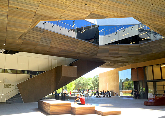The 96,000 sf McMurtry Building is the new home for Stanford’s Department of Art and Art History, an interdisciplinary hub for the arts. The project encourages collaboration from strategic adjacencies between the programs, including art history, film making, media and studio arts. The open building form locates “making” and “studying” in discrete strands, each clad in its own material, that wrap around a central atrium. The typography for Mayer/Reed’s signage and wayfinding design is fully integrated with the architectural finishes of each strand to clearly differentiate locations.