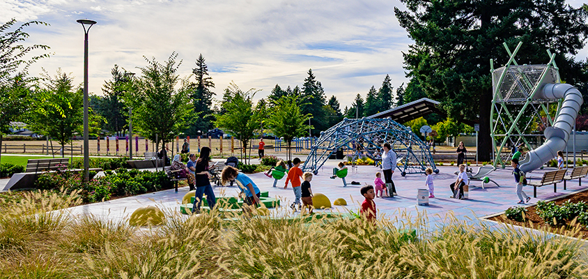 Mayer/Reed led design and construction documentation for a new 5.66-acre park within a racially and culturally diverse residential neighborhood. Through a public engagement process, the firm developed three options for incorporating access and desired programmatic elements including a playground, play fields, splash pad, community garden, picnic and gathering areas and walking paths. The resulting design features a central paseo connecting to the adjacent school. We collaborated with an artist to integrate art that reflects the multi-cultural community.